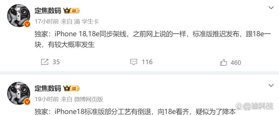 那么问题来了,大家是期待延期发布还工艺降级的iPhone18标准版,还是会直接加钱上Pro版本?一起来说说看吧。